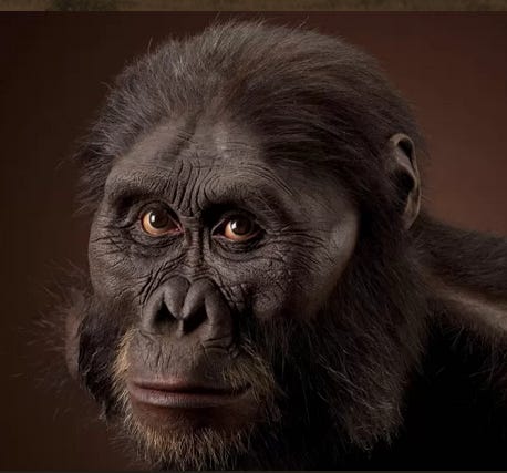 The oldest known transition from apes to humans was Sahelanthropus about six million years ago. The next step, Australopithecines (one of which is the A. afarensis nicknamed “Lucy” who has been called the mother of humanity) were bipedal and lasted from about 4 million to 2 million years ago. Australopithecines had only about one-third the brain volume of later Homo species, and it seems unlikely that they had much more speech than earlier primates.